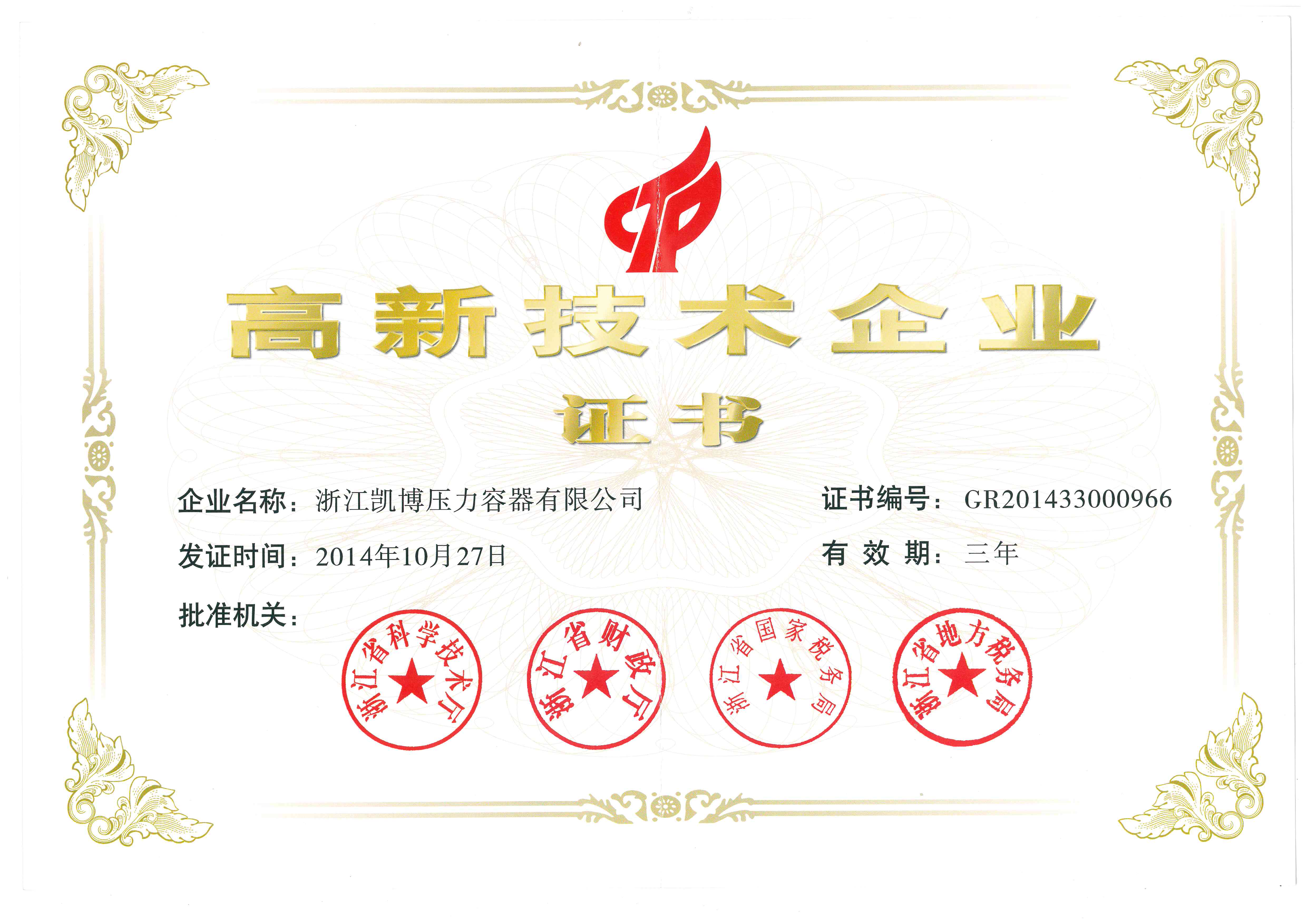 高新技术企业证书